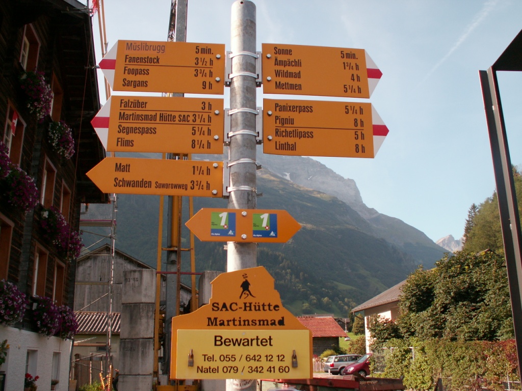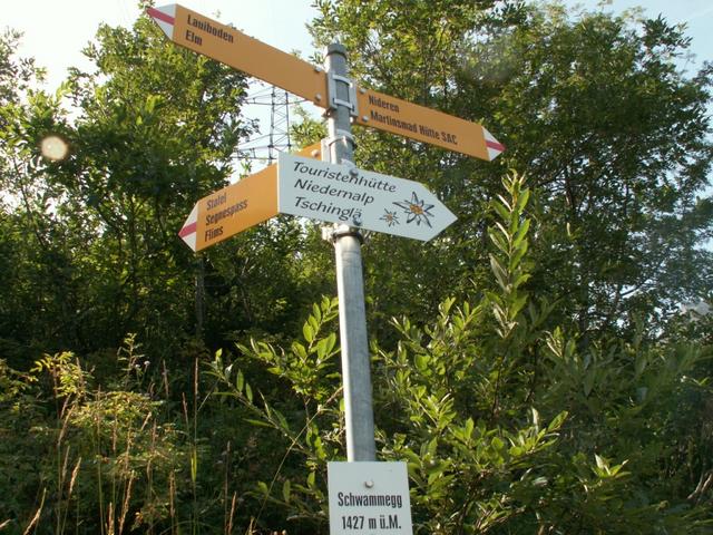 Wegweiser bei Elm - Untertal 969 m.ü.M.