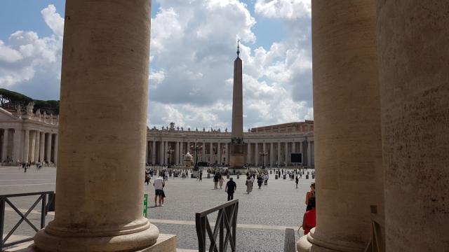 wir verlassen den Petersdom und treten hinaus auf den Petersplatz Datum 08.02.2022