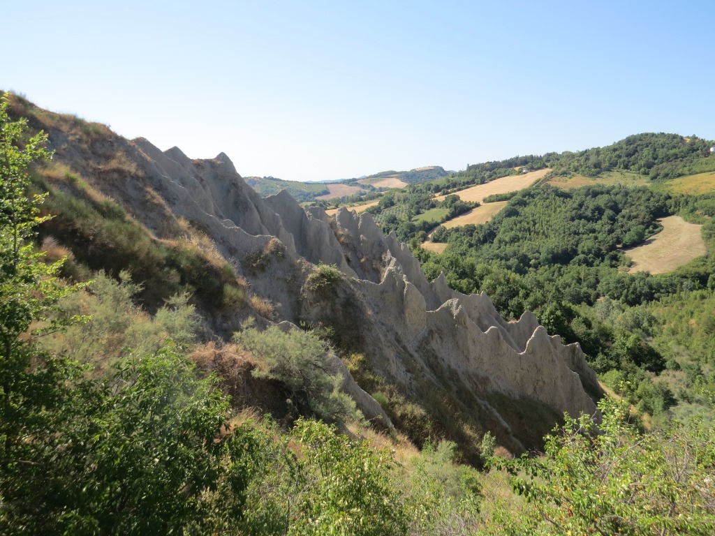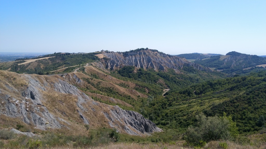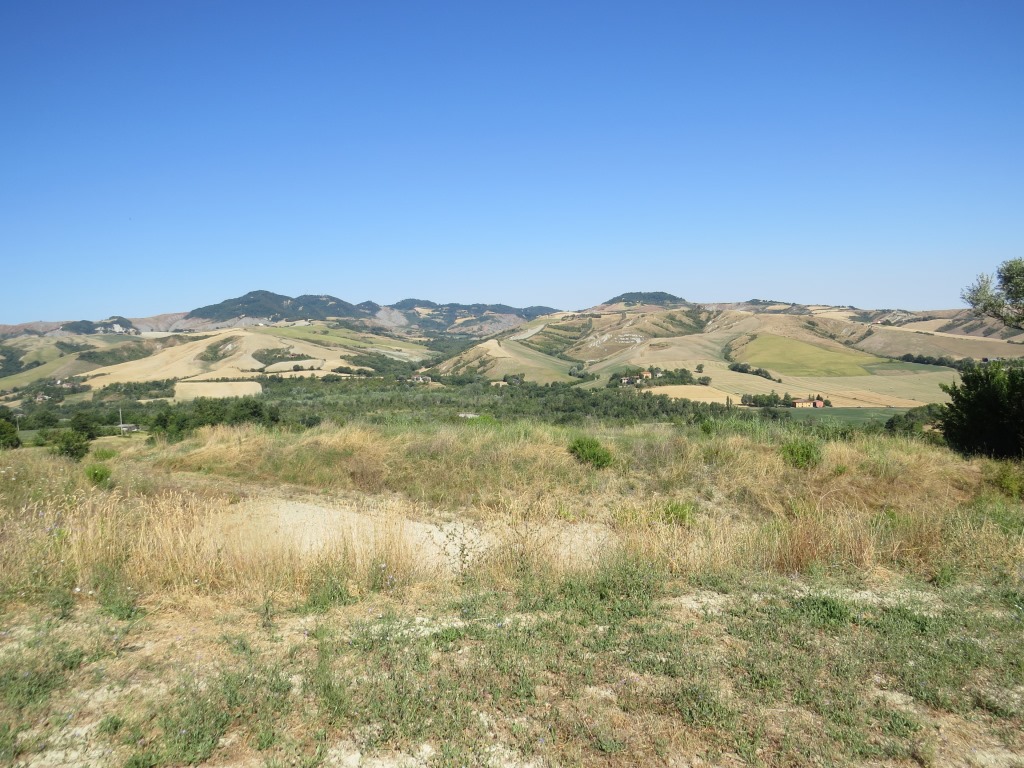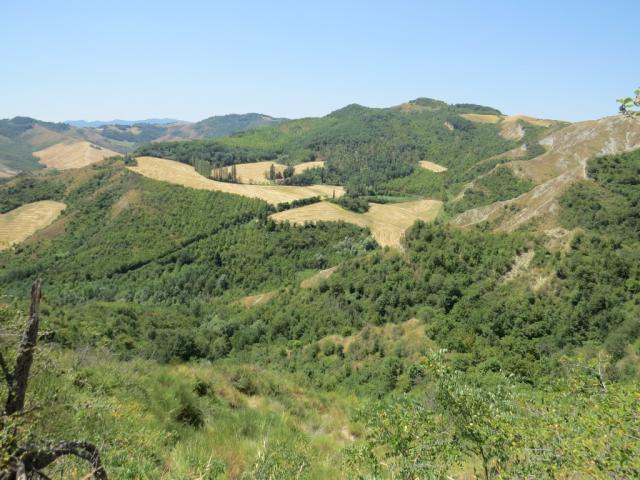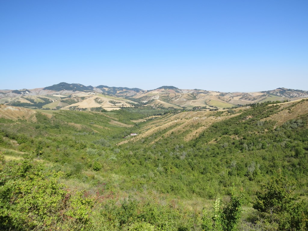 wir blicken nach San Martino in Pedriolo zurück und zu den Hügeln wo wir am Vortag abgestiegen sind