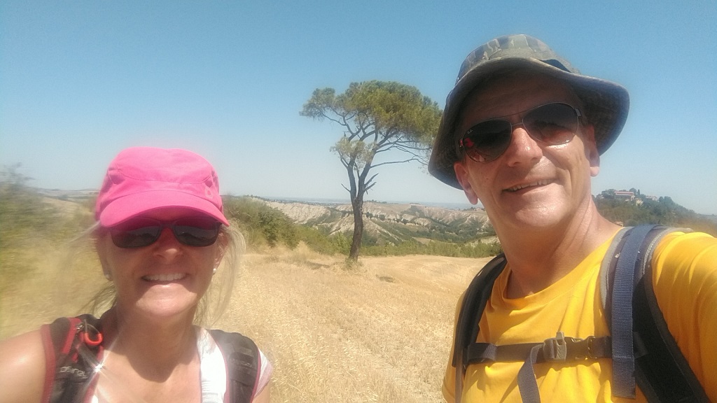 wir blicken zurück von wo wir gekommen sind, und zum Castello Pieve Sant' Andrea