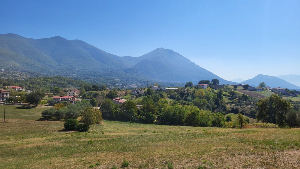 die Bergkette des Parco Regionale del Matese ist am Horizont gut ersichtlich. Heute geht am Fusse dieser Bergkette Datum 22.11.2023