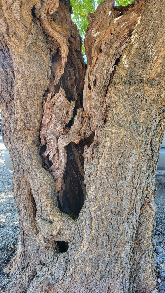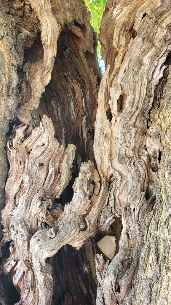 der uralte Stamm. Man glaubt es fast nicht, aber der Baum lebt trotz diesem löcherigen Stamm Datum 22.11.2023