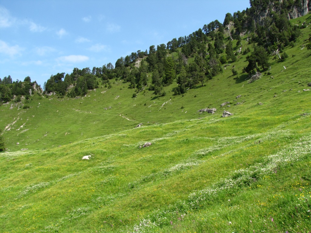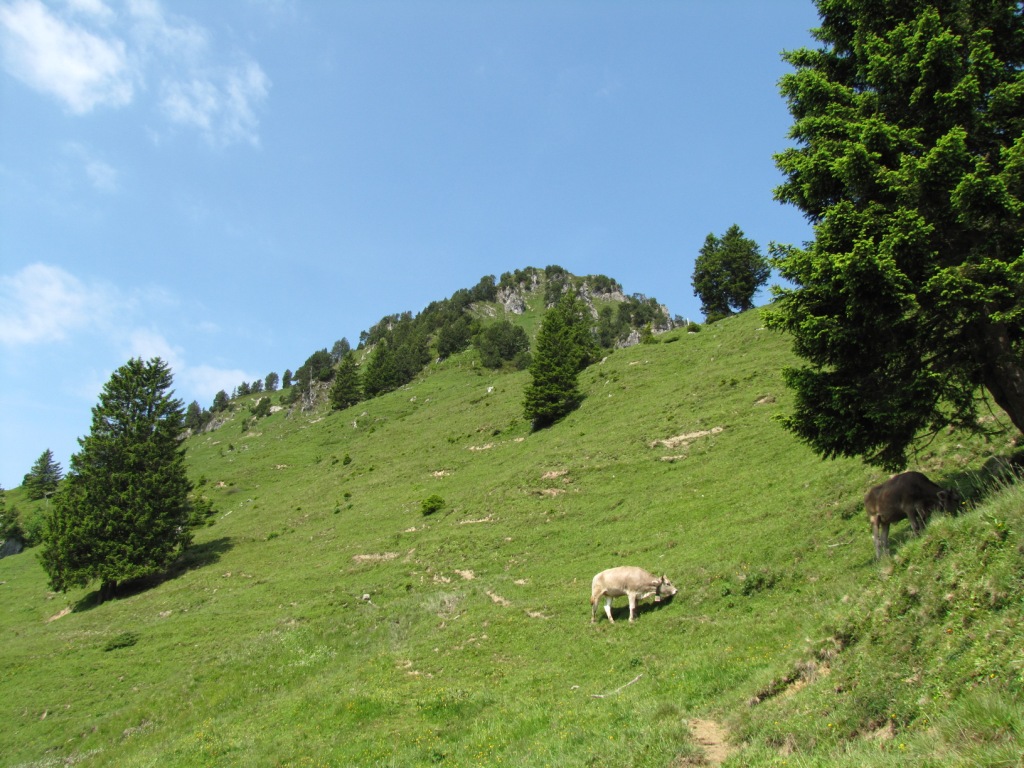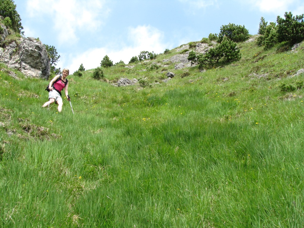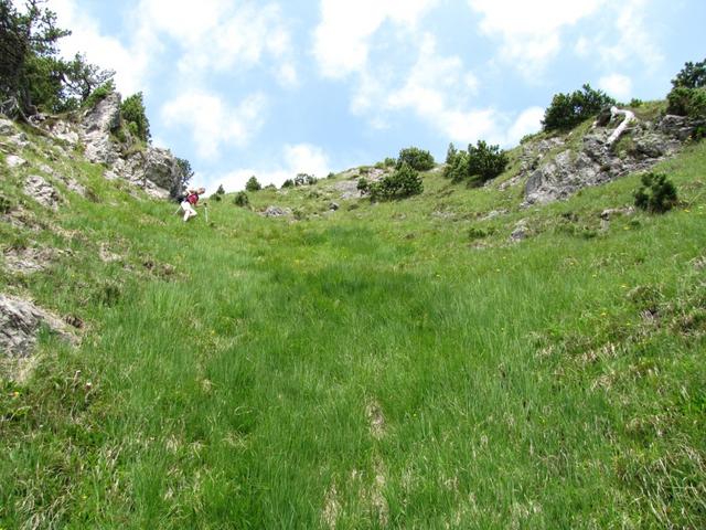 wir nehmen eine Abkürzung und steigen steil und weglos nach Roggenegg ab