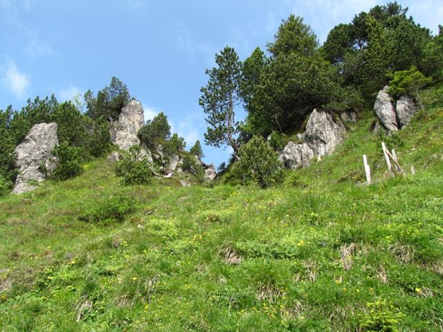 auf der 25'000 Wanderkarte ist der Weg unterbrochen (weglos) aufgezeichnet