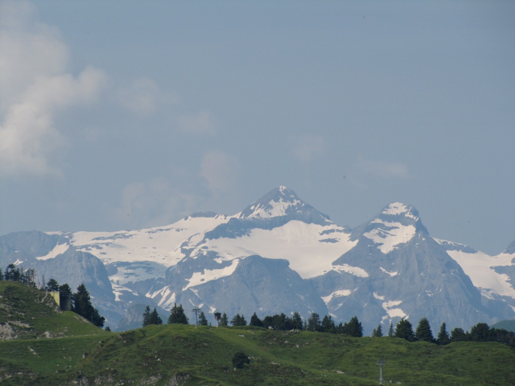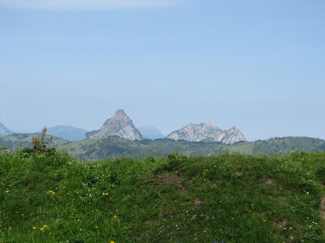 vom Roggengrat hat man eine schöne Aussicht auf diverse Gipfel. Die beiden Mythen. Dort waren wir auch schon