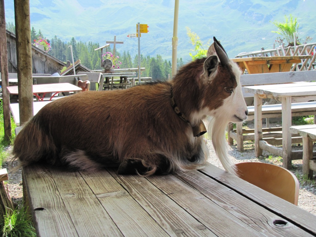 der Lieblingsplatz der Ziege. Wehe man versucht sie vom Tisch zu verscheuchen!