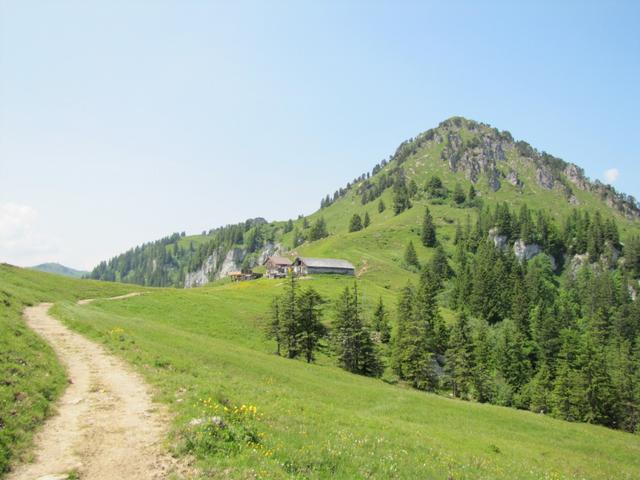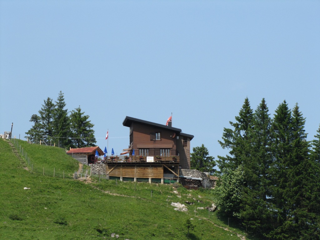 auf dem Weg nach Roggenegg. Die Bergbeiz ist schon ersichtlich