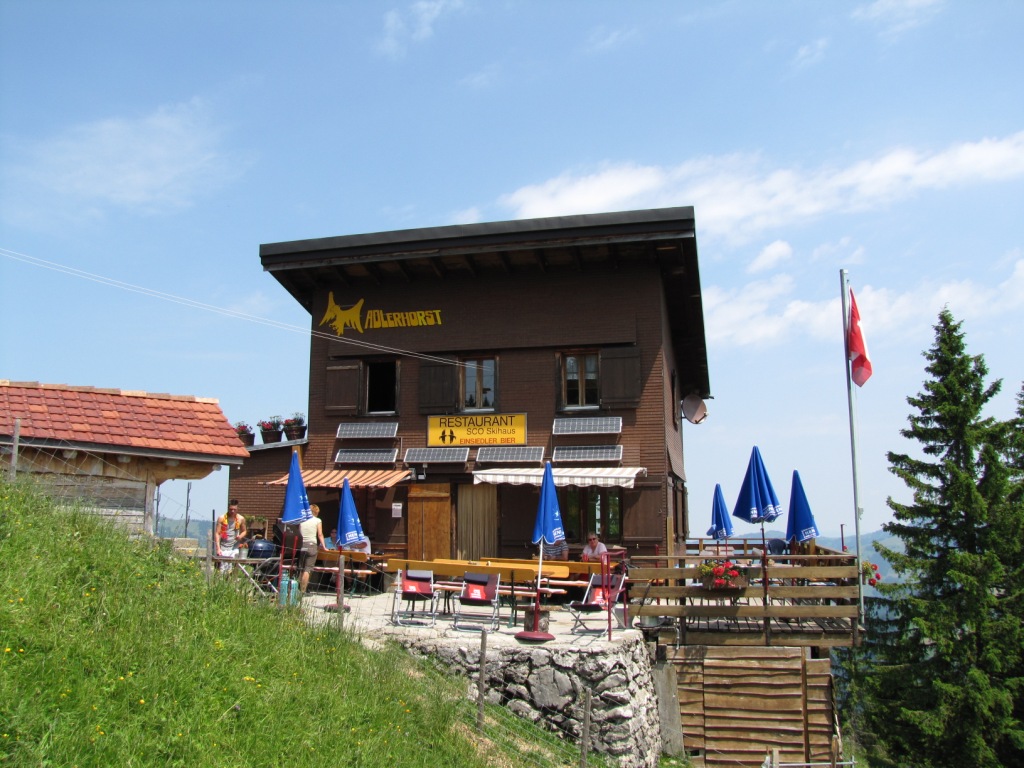 vor uns taucht das Bergbeizli Adlerhorst aus