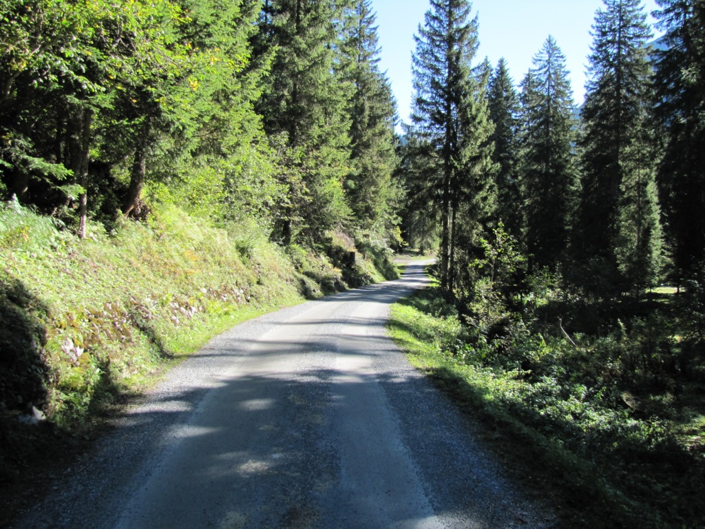 über eine Asphaltstrasse wandert man zur Alp Garfiun Datum 08.11.2010