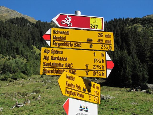 Wegweiser bei Moniel. Erstes Ziel Alp Garfiun Datum 08.11.2010