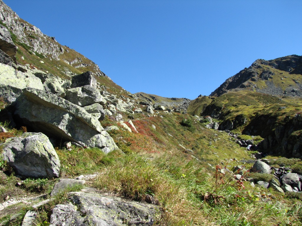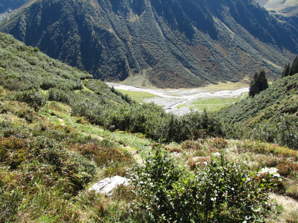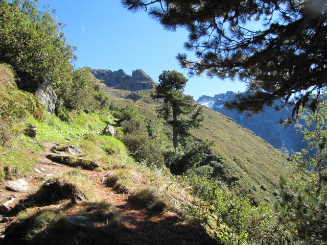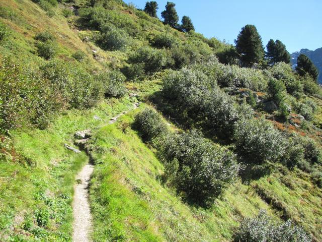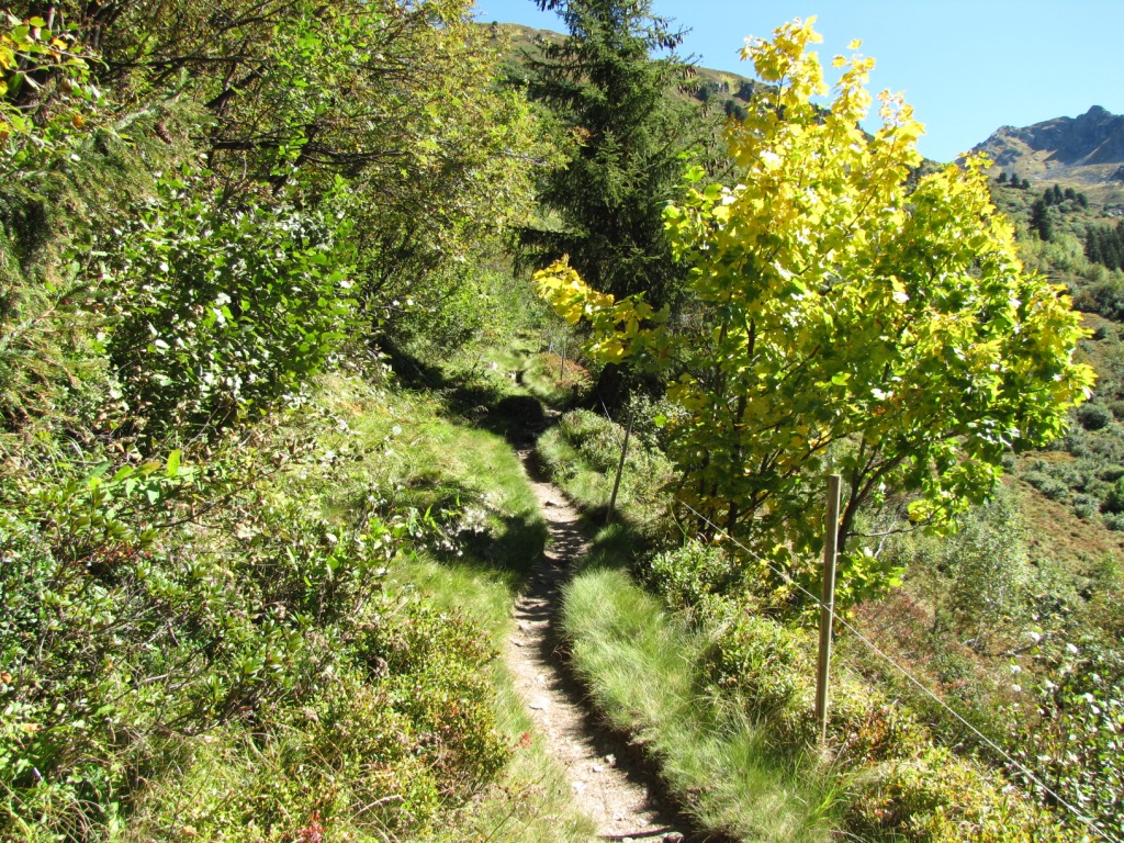 auf der orographisch linken Seite vom Seebach führt der einfache Wanderweg abwärts zur Alp Sardasca Datum 17.10.2015