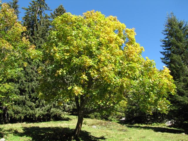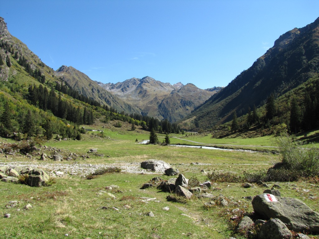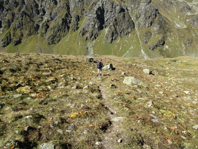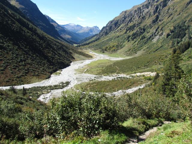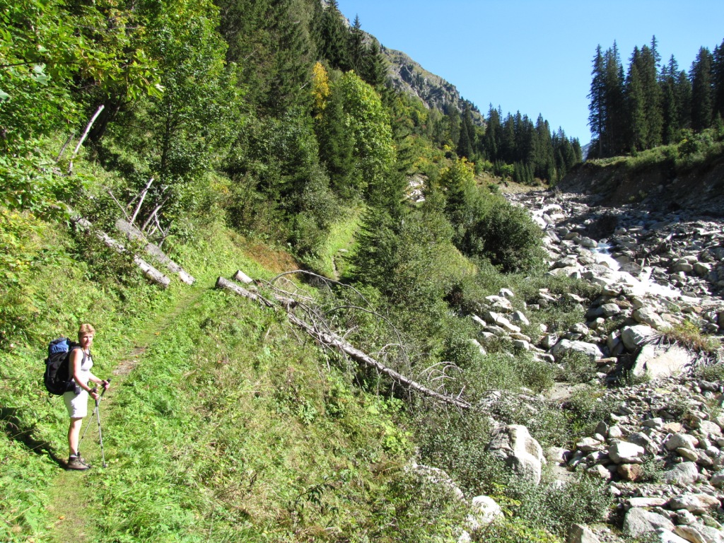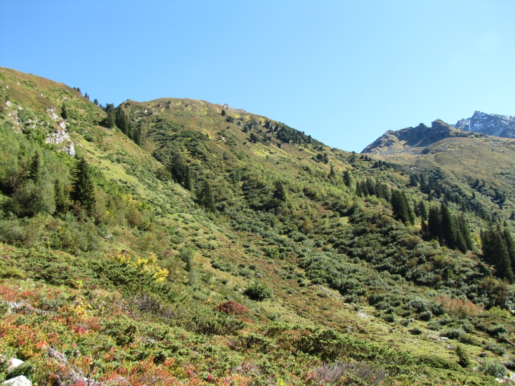 auf der orographisch linken Seite vom Seebach führt der einfache Wanderweg abwärts zur Alp Sardasca Datum 17.10.2015