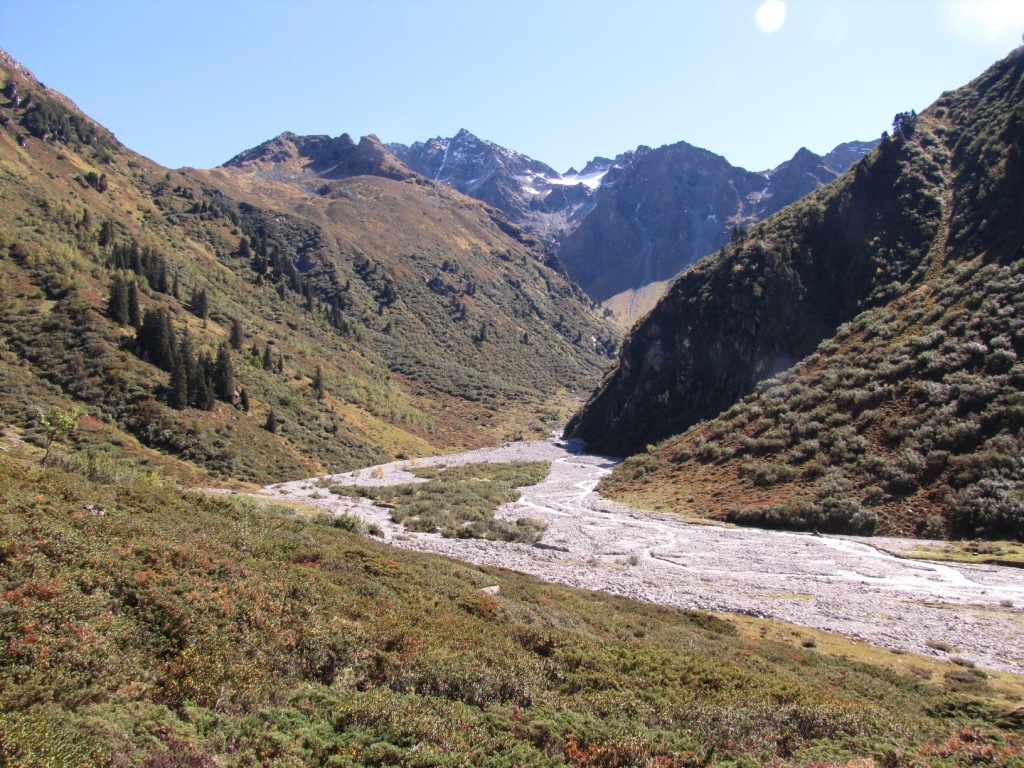 Alp Sardasca. Gut ersichtlich, wie breit der Seebach beim Unwetter 2005 war Datum 23.01.2017