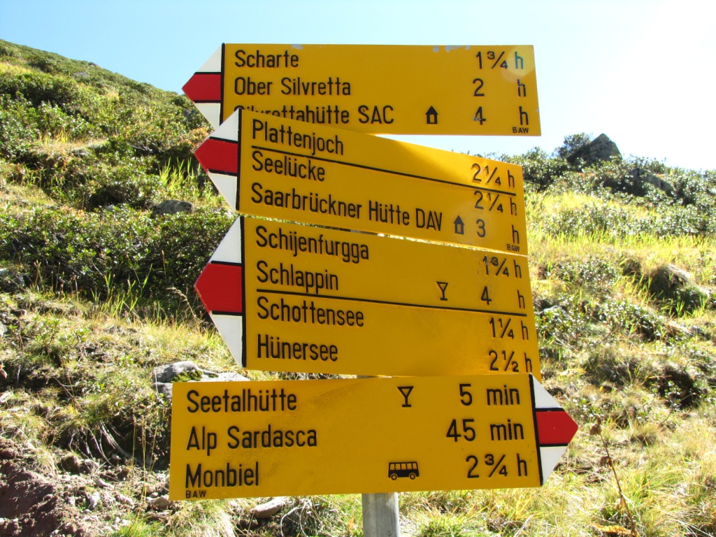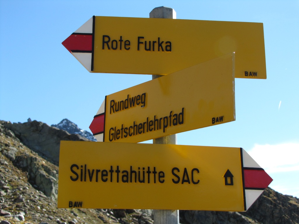 Wegweiser bei der Silvrettahütte Datum 08.11.2010