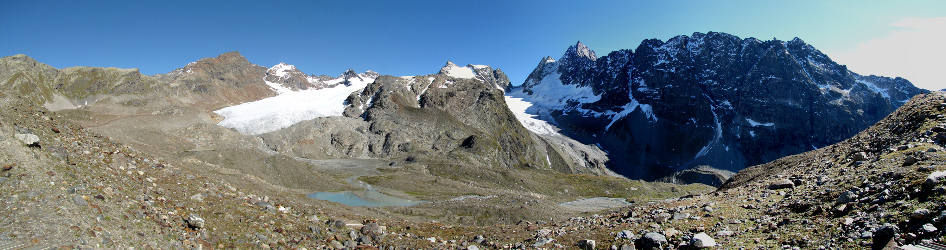 Breitbildfoto von der Scharte aus gesehen, Richtung Ober Silvretta mit seinen 11 Seen Datum 23.01.2017