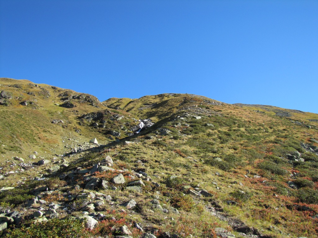 alles am Hang vom Mittelgrat entlang, führt der Weg zur Scharte Datum 08.11.2010
