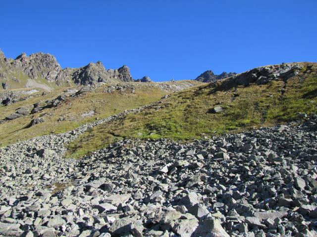 zuerst über Blockschutt, danach über Schotter führt der Weg nun abwärts nach Unghürboden Datum 08.11.2010
