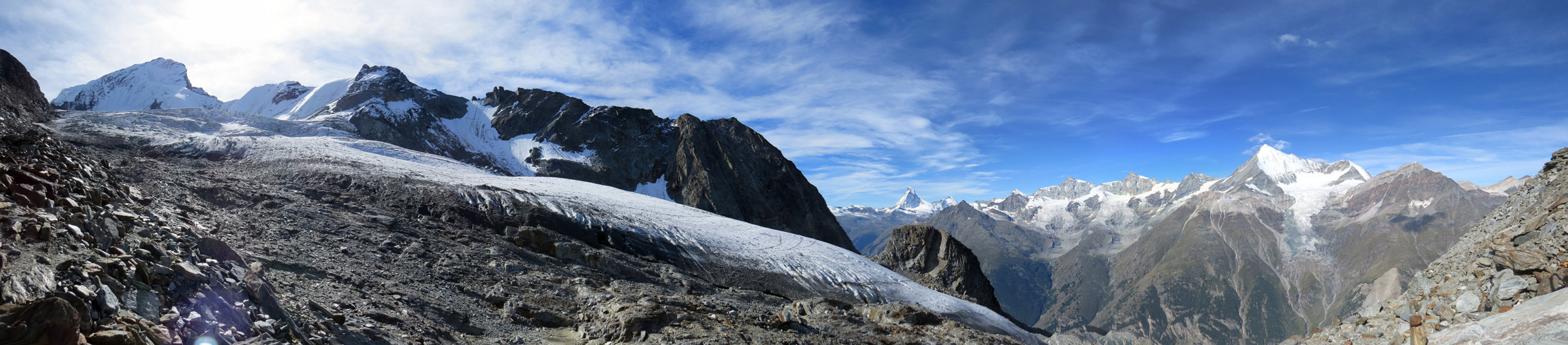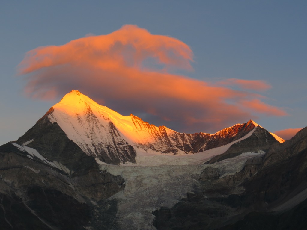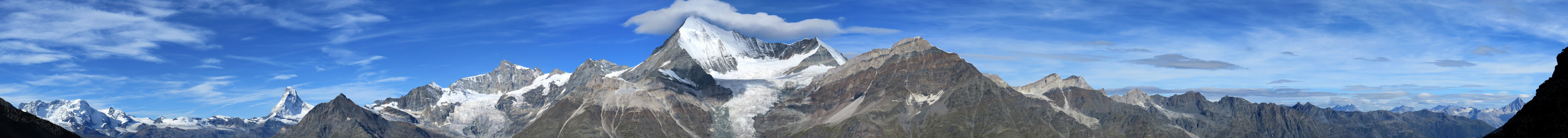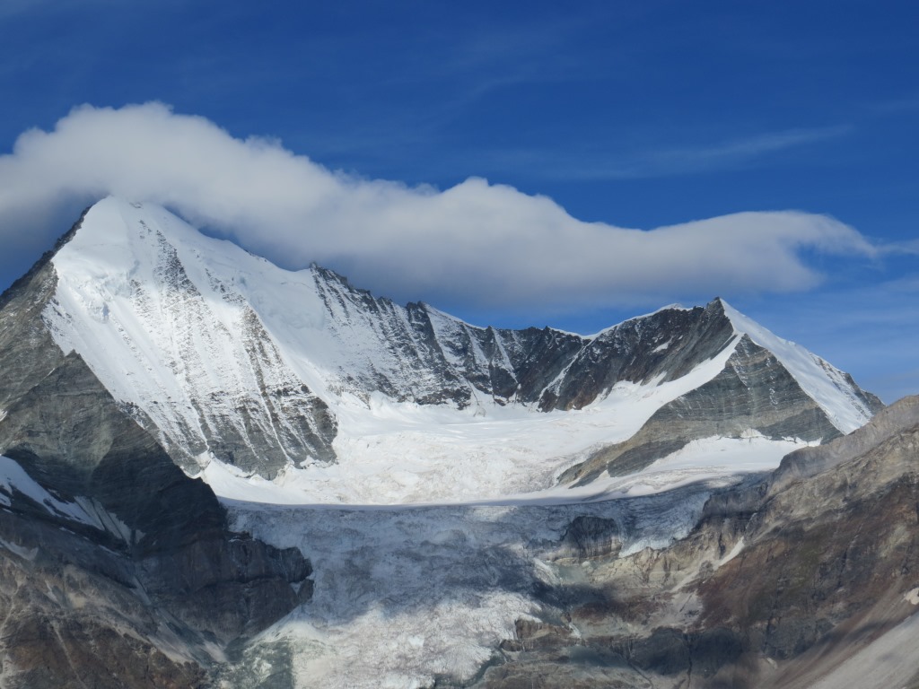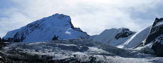 Breitbildfoto mit Festigletscher und Dom. Der Dom ist der höchste Gipfel des Mischabelmassivs Datum 24.02.2017