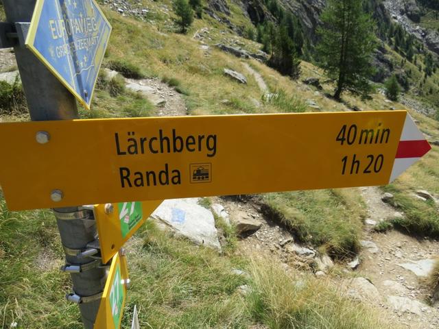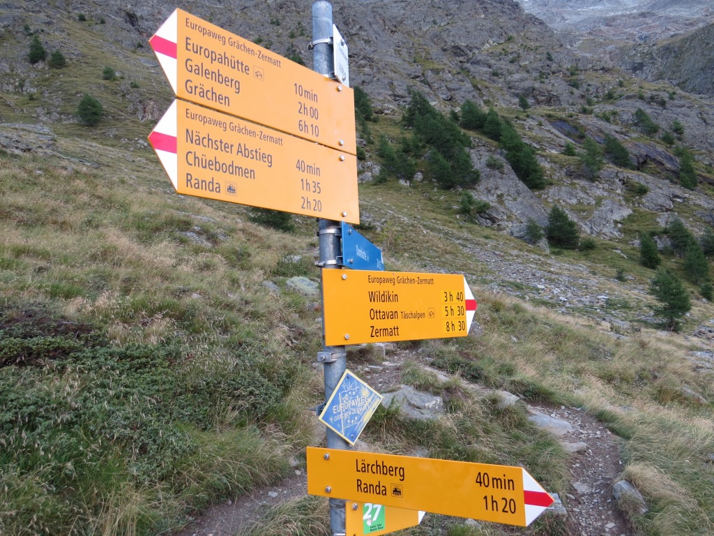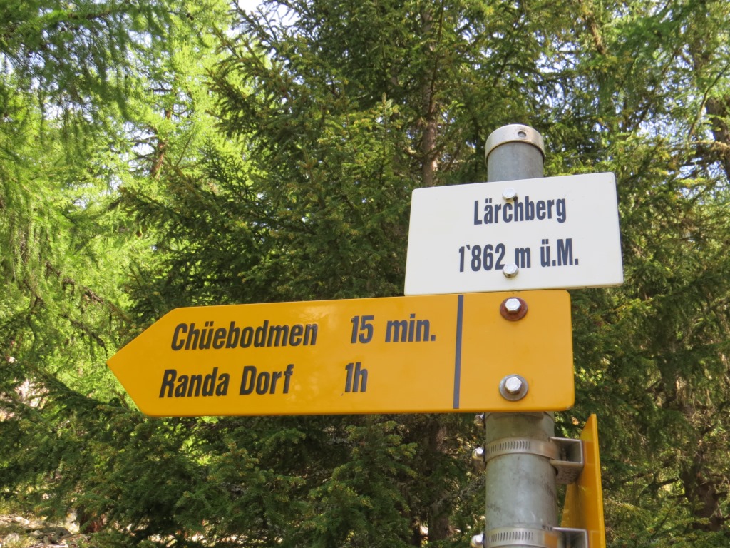Wegweiser bei Lärchberg 1862 m.ü.M. es geht weiter abwärts Richtung Randa Datum 14.03.2016