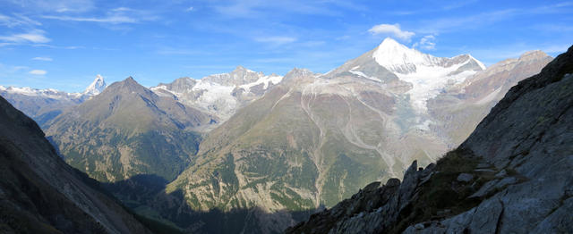 Matterhorn, Zinalrothorn und Weisshorn. Bei Breitbildfotos nach dem anklicken, immer noch auf Vollgrösse klicken Datum 24.02.2017