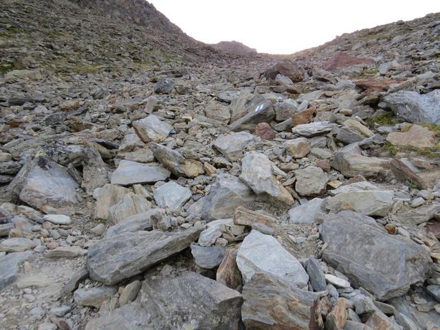 von der Hütte folgt man erst klaren, dann weniger ersichtlichen Wegspuren ostwärts einer Seitenmoräne des Festigletscher Datum 14.03.2016