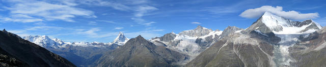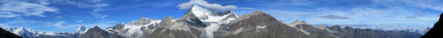 sehr schönes Breitbildfoto: Breithorn, Klein Matterhorn, Matterhorn, Mettelhorn, Zinalrothorn und Weisshorn Datum 24.02.2017