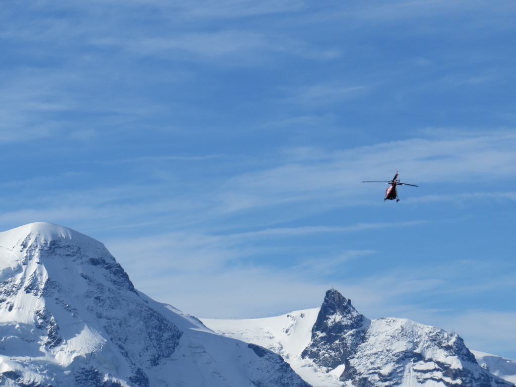die Air Zermatt im Einsatz. Im Hintergrund Breithorn und Klein Matterhron Datum 14.03.2016