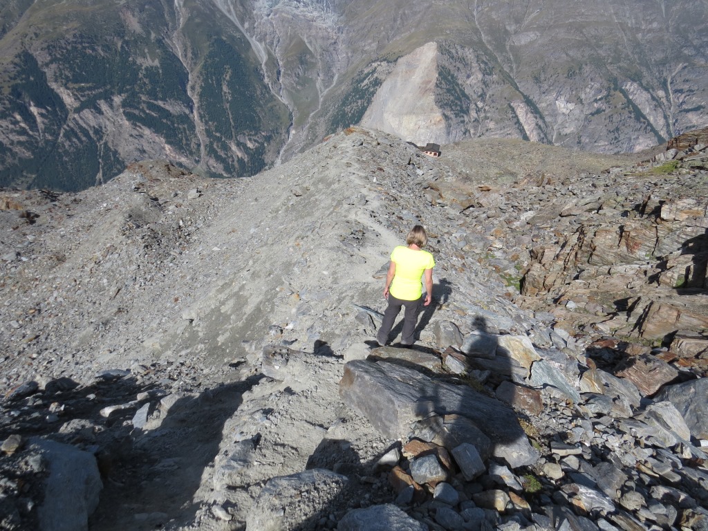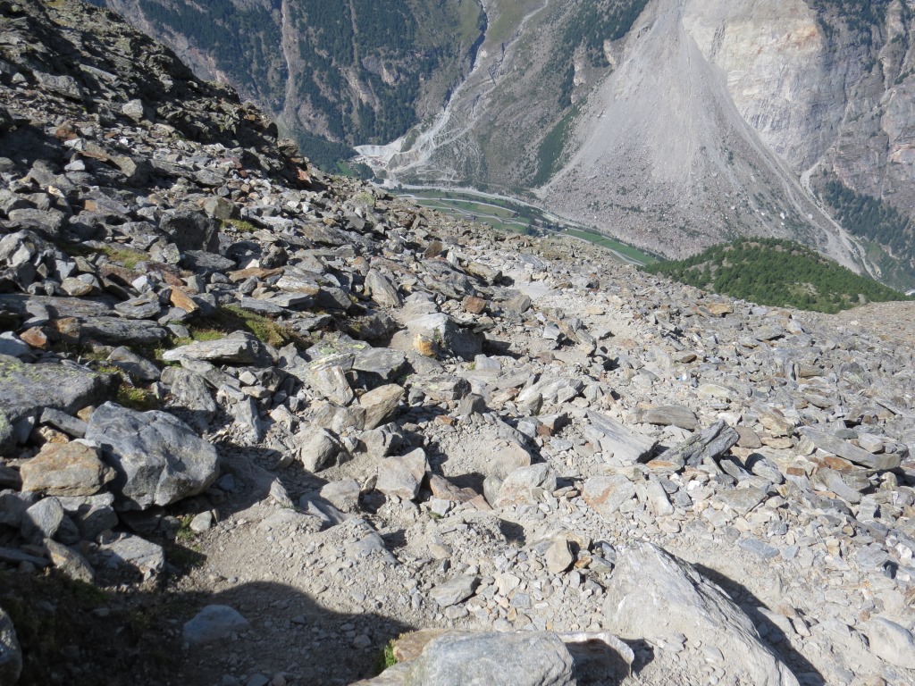 über die alte Seitenmoräne geht es zur Domhütte zurück. Seht ihr die Hütte? Datum 14.03.2016