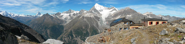 super schönes Breitbildfoto mit Domhütte und ein grandioses Bergpanorama Datum 14.03.2016