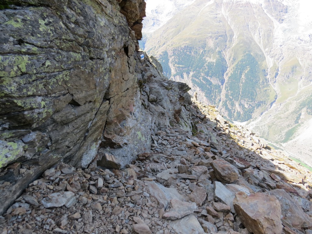 steile Felswände müssen durchquert werden. Bei Schnee oder Nässe heikel Datum 14.03.2016