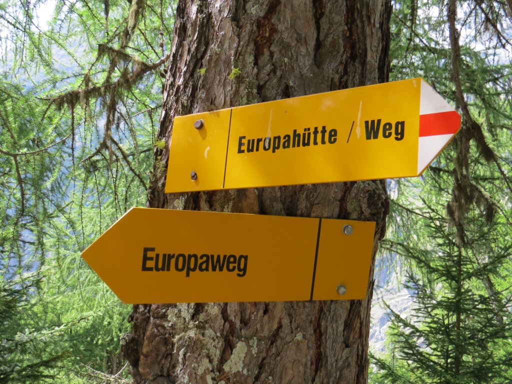 von der Europahütte passieren wir als Erstes den Abzweig zur Domhütte... Datum 14.03.2016