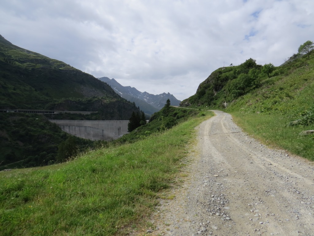auf einer breiten Kiesstrasse gewinnen wir an Höhe und laufen rechts an der Staumauer vorbei