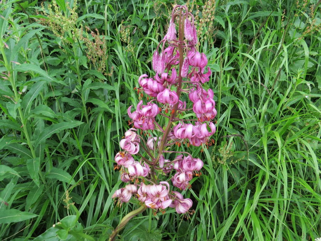 der ganze Hang ist voll von Türkenbund. Eine Blume der Gattung der Lilie