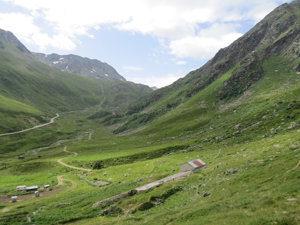 wir haben die kleine Ebene hinter uns gelassen und überqueren bei L'Hospitalet die Passstrasse
