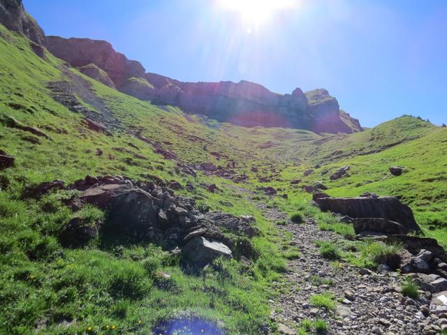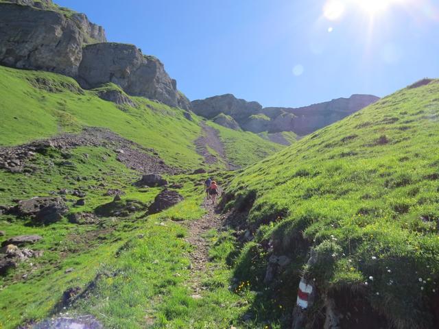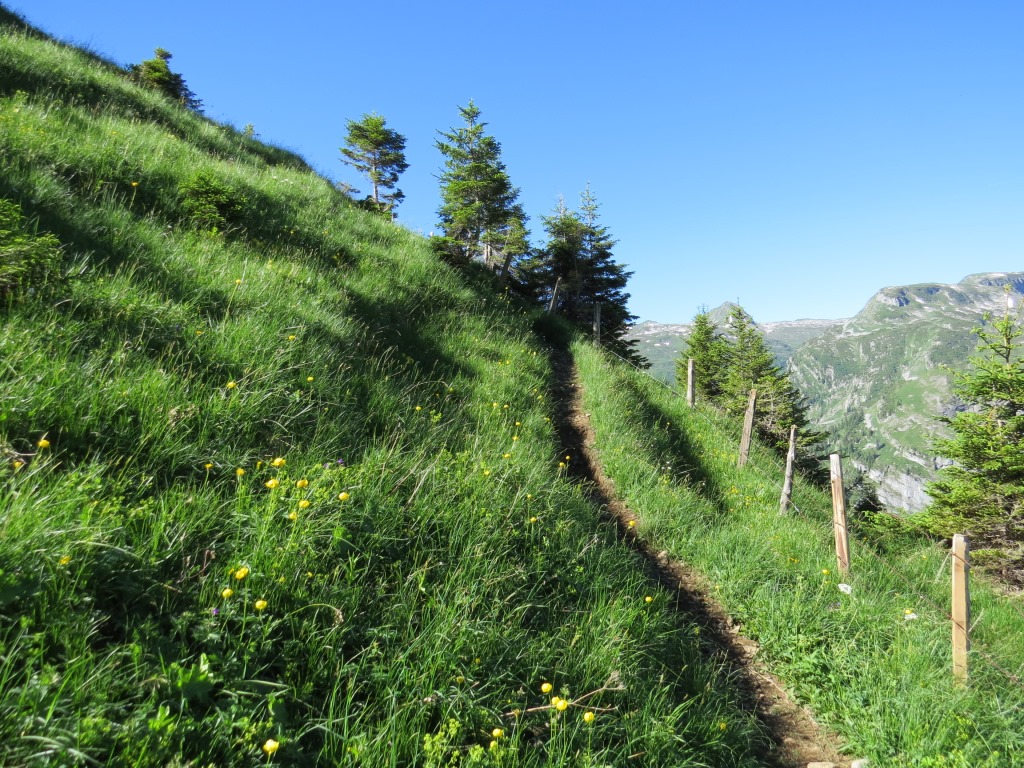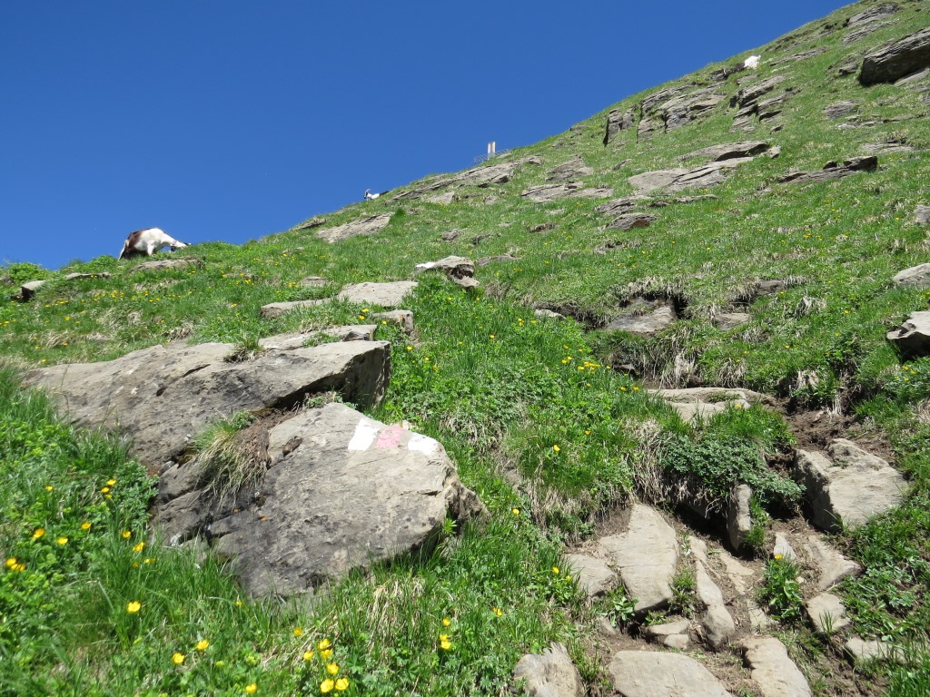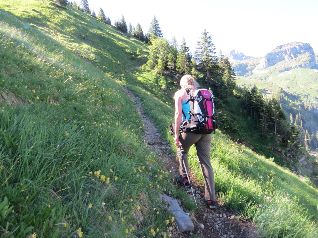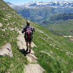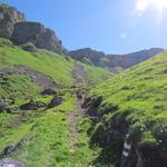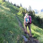 über den schön angelegten Bergweg, geht es über Alpweiden, Richtung Alp Zingel
