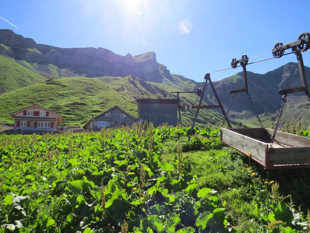 vorbei am Alpgebäude auf der Alp Obere Träsmeren 1979 m.ü.M...