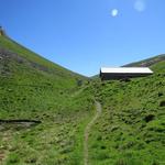 über eine nächste Steigung durch Grasland, erreichen wir das Alpgebäude auf der Alp Obere Träsmeren 1979 m.ü.M.