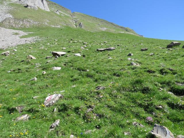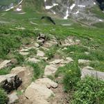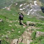 ... und laufen über einem mit grossen Steinen belegten, gut markierten Weg aufwärts