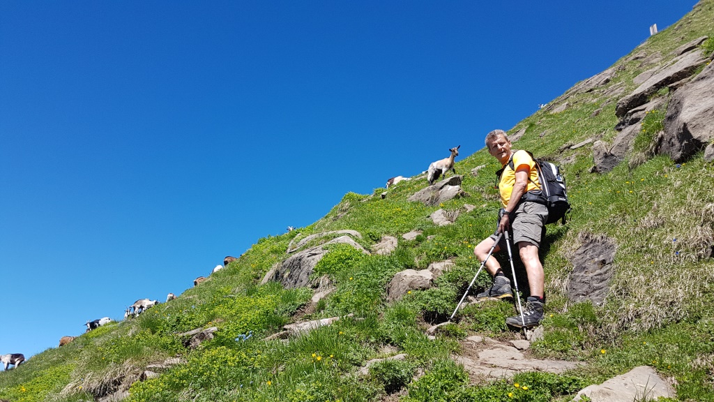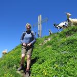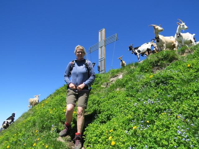 wir haben den schmalen Gipfelgrat des Wasserbergfirst 2340 m.ü.M. erreicht. Viele Ziegen begrüssen uns