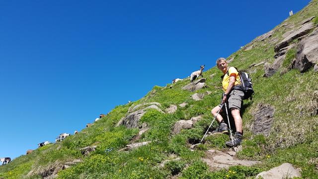 direkt über unsere Köpfe, auf dem Grat des Wasserbergfirst, grasen Ziegen