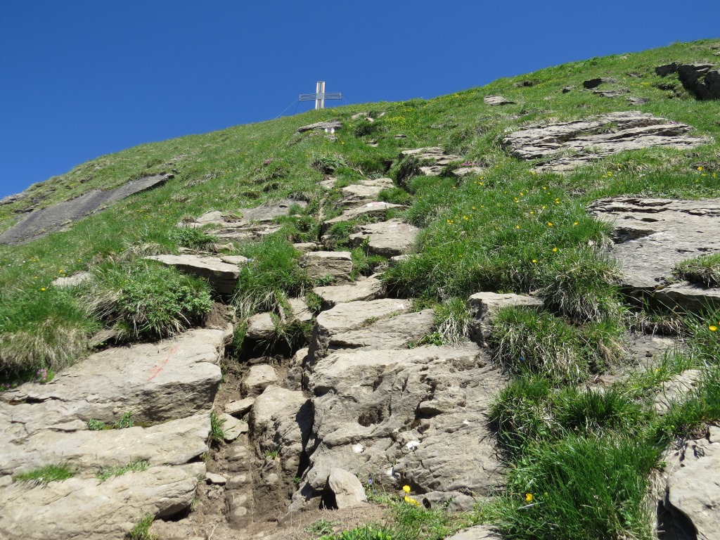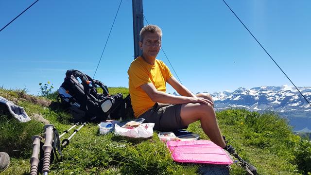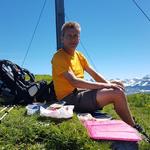 bei traumhaften Bedingungen legen wir neben dem grossen Gipfelkreuz die Mittagspause ein