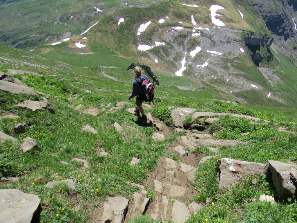 auf dem gleichen Weg wie wir gekommen sind, geht es wieder runter