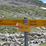 ostwärts über flaches Terrain weiter, erreichen wir kurz nach der Alphütte ein einsamer Wegweiser...