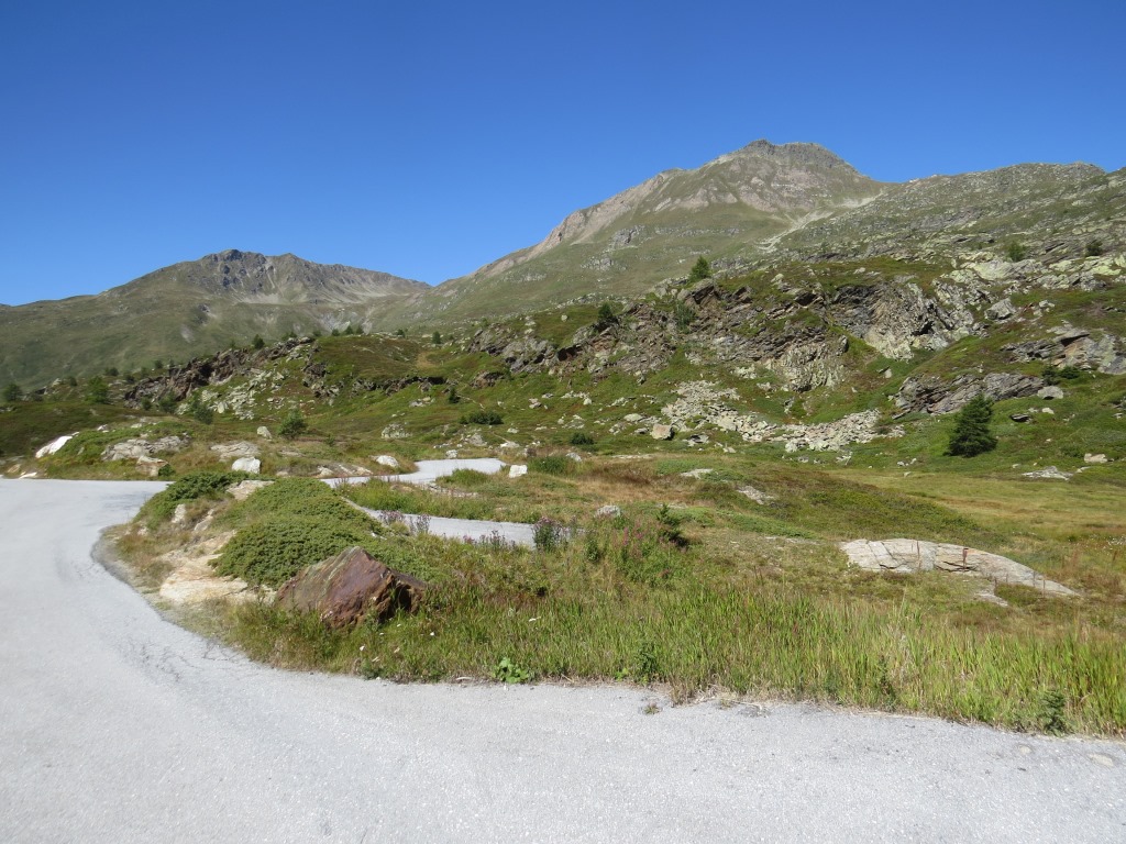am Ende der geteerten Strasse nehmen wir die Abkürzung 2017 m.ü.M. und umgehen so eine Rechtskurve der Alpstrasse Datum 19.01.2018