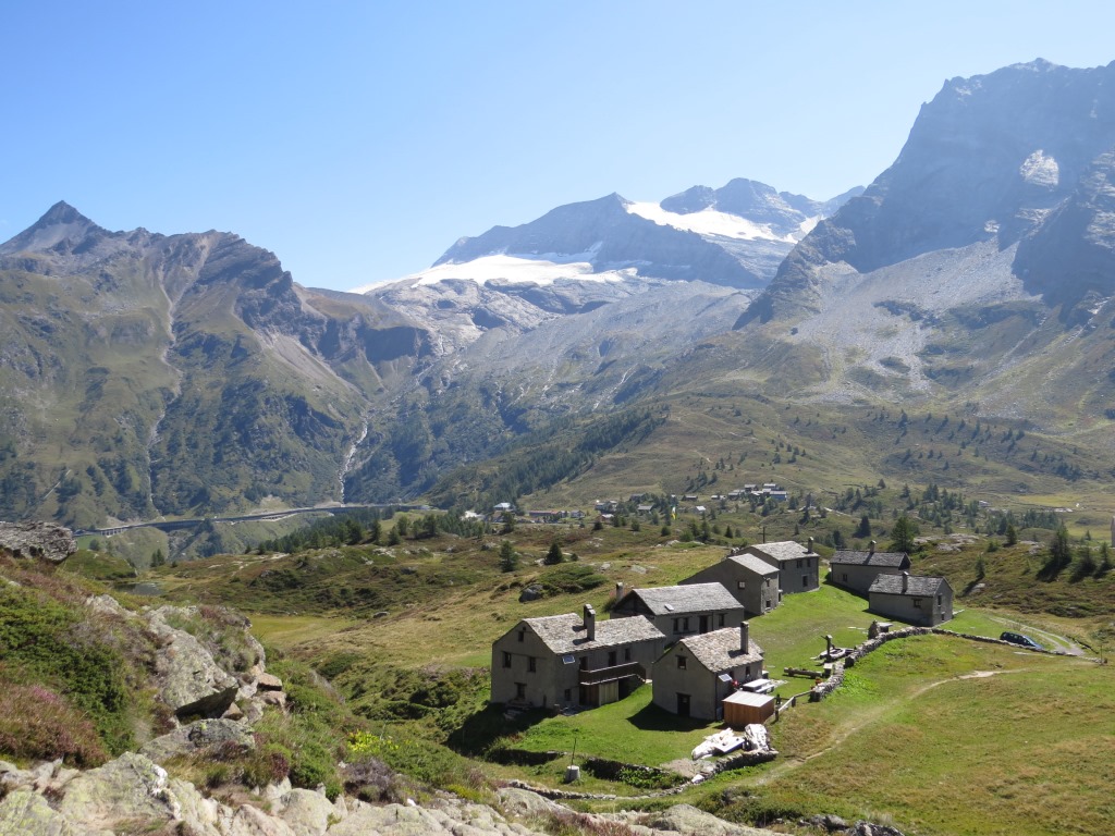 Blick über die Alpsiedlung Hopsche zum Monte Leone mit Chaltwassergletscher, Breithorn und Hübschhorn Datum 21.01.2018