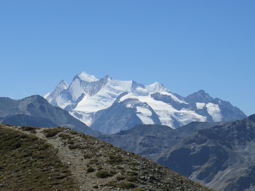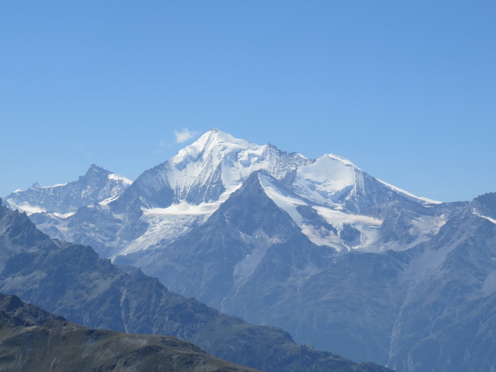 links die Mischabelgruppe mit Balfrin, Dom und seine Trabanten. Rechts die Weisshorngruppe Datum 22.01.2018