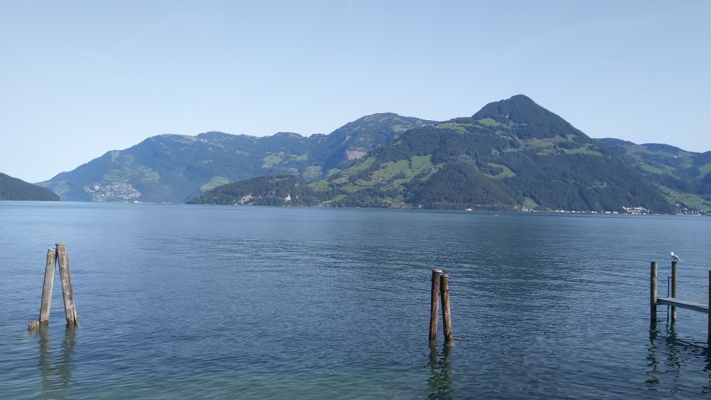 der Blick auf den Vierwaldstättersee hier mit Pilatus im Hintergrund, bleibt weiterhin sehr schön