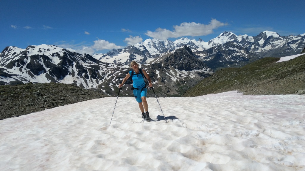 kurz vor der Fuorcla Chamuera müssen wir ein Altschneefeld überqueren Datum 16.04.2026