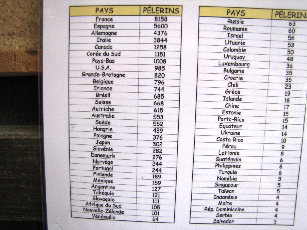Informationen zu Anzahl und Herkunft der Pilger im Pilgerbüro Datum 09.07.2011
