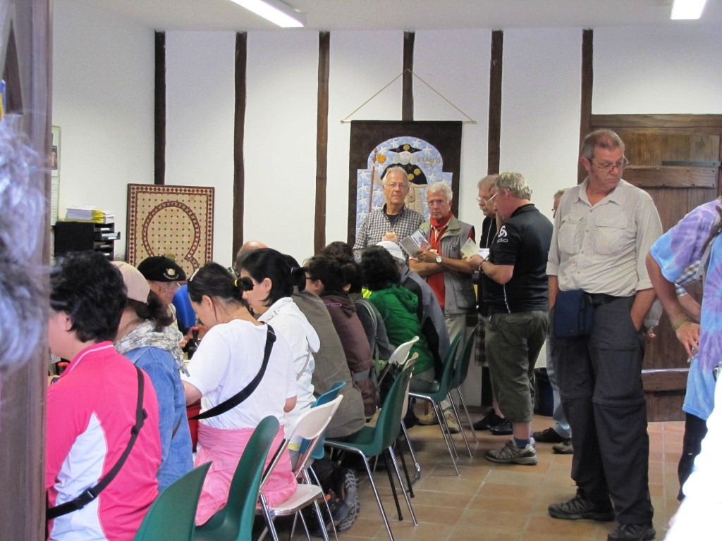 Grossandrang im Pilgerbüro. Zum Glück haben wir schon vorher den Stempel abgeholt. Datum 09.07.2011